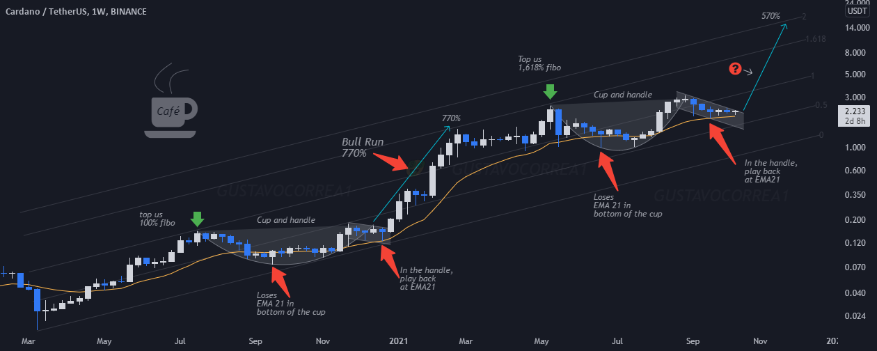 👉🏼 Note that the asset loses the EMA21 at the bottom of the Cup and Handle , crosses over it and on the handle retests the EMA 21 as a support.