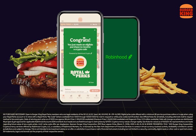 Maria Posada, vice president of digital guest experience for Burger King North America, told USA TODAY in a statement that it was a “natural fit” to partner with Robinhood to offer crypto to customers with current conversation around cryptocurrency.