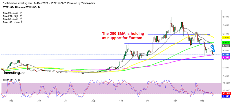 But the bearish period in the crypto market since last month has weighed on Fantom as well, which saw it lose almost to-thirds of its value. The price almost reached $3.50 at the end of October, while earlier this month FTM/USD fell to $1.20, where the 200 SMA (purple) stood on the daily chart. That moving average is providing support again today, after the decline yesterday, so Fantom is trying to decide what to do here. This looks like a good place to buy Fantom coins, with a stop below the next support zone which comes at around $1.