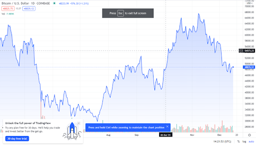 It hit its all-time high just last month after scaling well over $68, 000. However, the surge did not last long sine in early December, Bitcoin tumbled to $46, 000. But considering BTC started the year at $30, 000, it’s still outperforming a lot of assets. But could Bitcoin really hit $100, 000?