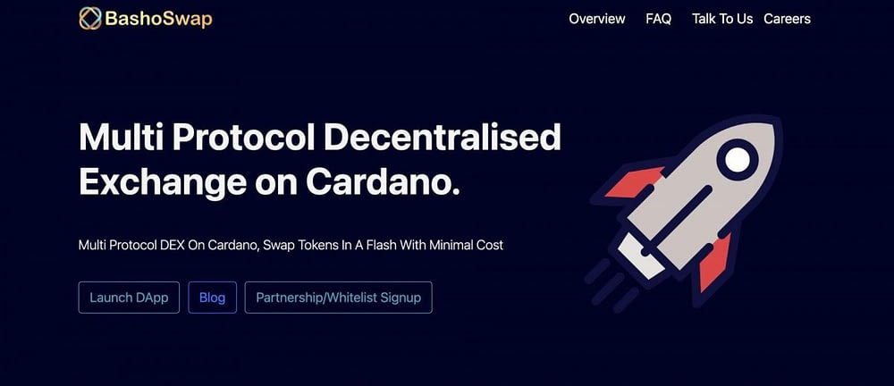 Bashoswap, a decentralized exchange (DEX) on Cardano network that aims to facilitate swaps between ADA and other crypto assets built on Cardano.