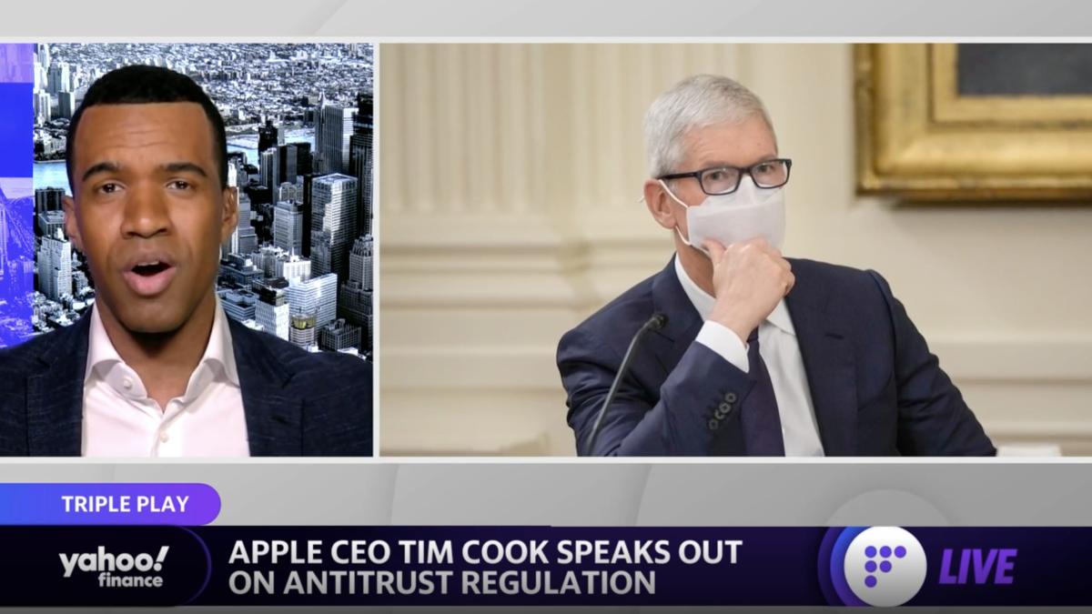 Apple CEO Tim Cook spoke publicly about antitrust regulation, Shibu Inu stock is up after being added to Robinhood’s platform, and Starbucks is under pressure after being downgraded by Citi.