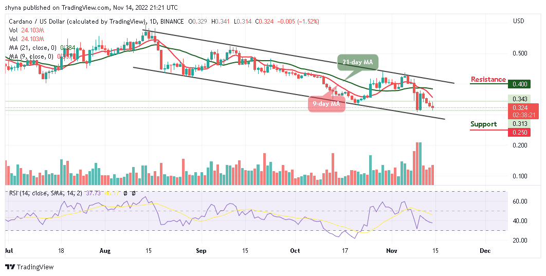 The Cardano price prediction reveals that ADA may find another support at $0.30 as the price goes down by 1.52% below the moving averages.