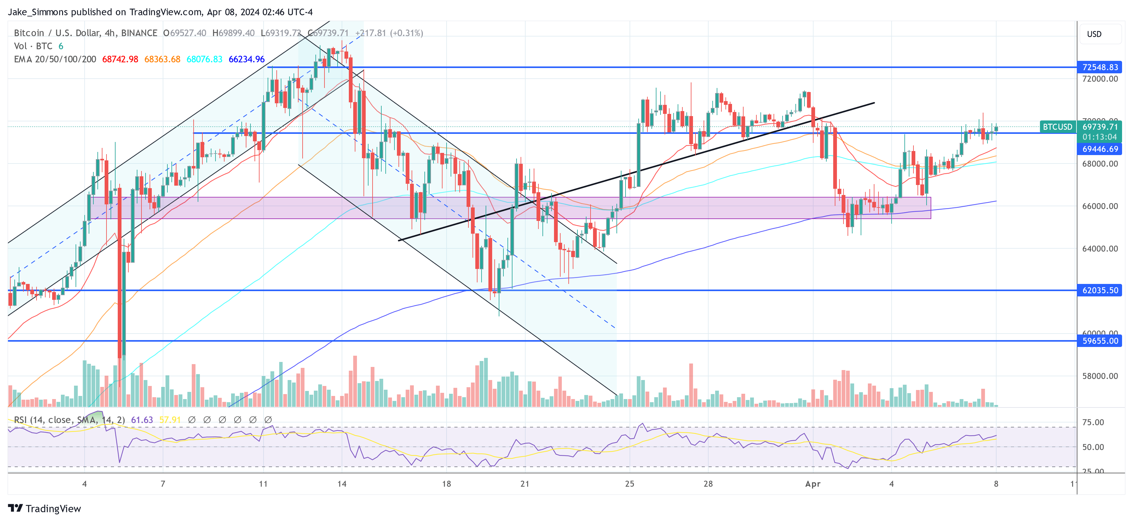 At press time, BTC traded at $69,739.