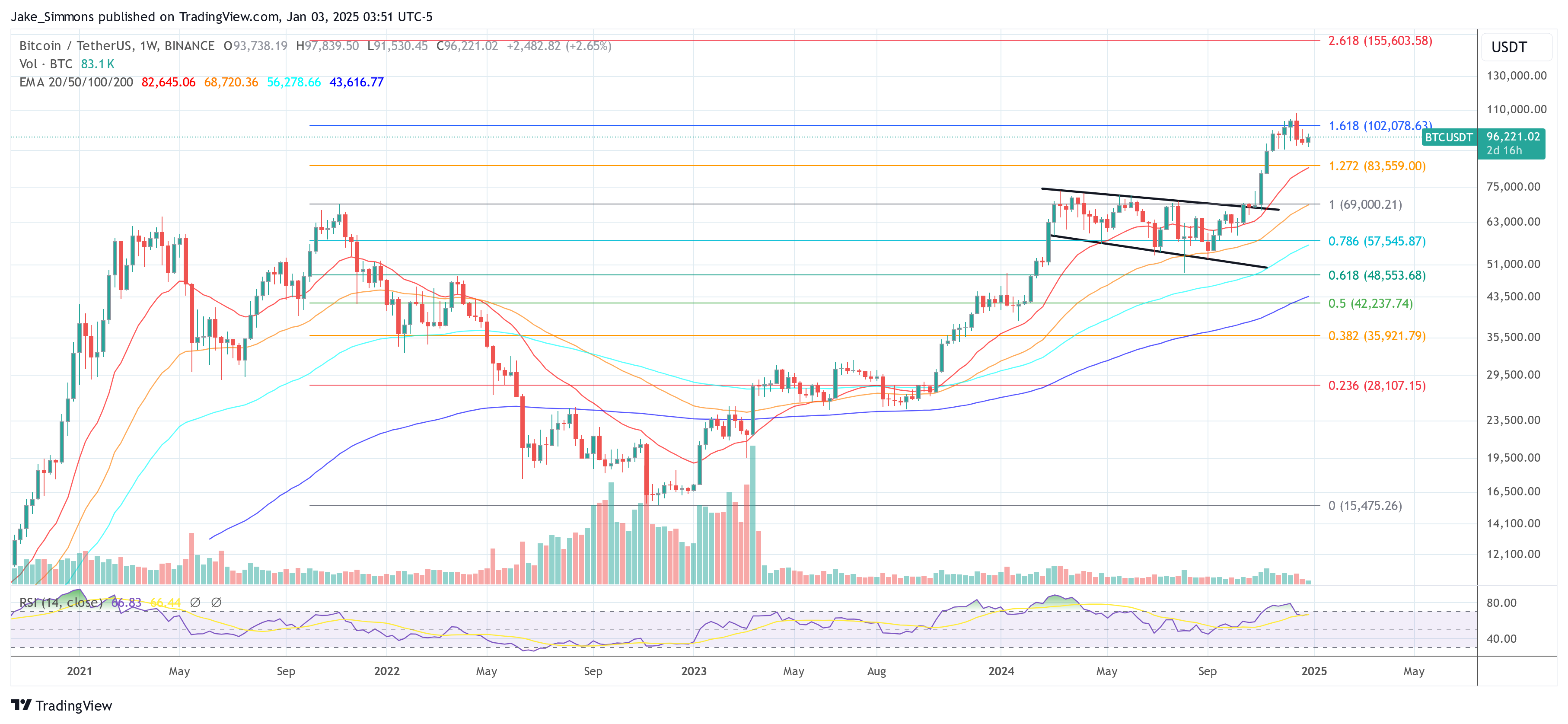 At press time, BTC traded at $96,221.